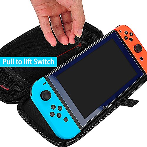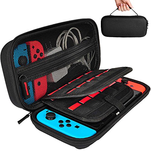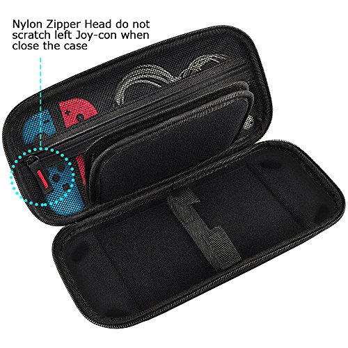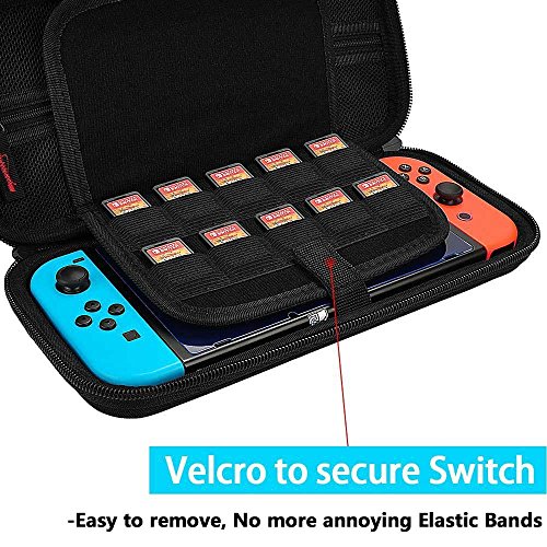 Every part of our Switch case is made from the highest quality materials available. We at Hestia Goods focus on Product Quality and Offer a High level of consumer experienceWHY PURCHASE THIS SWITCH CASE?·Strong and Durable: Hestia Goods case is made of top quality nylon fabric. Nylon is much stronger and durable than smooth PU leather. A nylon case can normally last a life time while PU material tends to deteriorate in a couple of years.·UNIQUE ZIPPER HEAD DESIGN: We use a High Quality Nylon Zipper Head to replace a Other Case’s Iron Zipper Head, for avoiding the Left Joy-cons scratch Risk. ·SPECIAL ZIPPER MESH POCKET: Zipper ensures your small items do not fall out and Easy to take and put. ·A Velcro secures Design: We have replaced two elastic straps with a Velcro in our latest version for better usability. It is a lot easier to put in and take out the Switch with a Velcro. ·LARGE STORAGE: A large zippered mesh pocket provides secure storage room for small Nintendo accessories like small AC charger, charging cable, slim power bank, ear buds, and 2 extra Joy-Cons ·20 game card slots : Build with 20 game card slots, allowing you to carry and change your favorite games anytime & anywhere. Hestia Goods Customer Service: 24-hour message reply(Mon.-Sun.) 100% satisfaction guarantee 30-day refund or free replacement of defective items For any question you’re unhappy with us, please feel free to contact us (via “Contact Seller” to us or email us: [email protected]) , we’ll try our best to solve the problem quickly and efficiently! PLEASE NOTE: The Switch and accessories are not included and are for illustrative purposes only.HIGH QUALITY CASE – High Quality Durable hard shell Protect your Nintendo Switch Console free from scratches. A Velcro secures the Nintendo Switch inside the case (We have replaced two elastic straps with a Velcro,It is a lot easier to put in and take out the Switch with a Velcro), make your switch more stable and convenient when you’re traveling or not using.